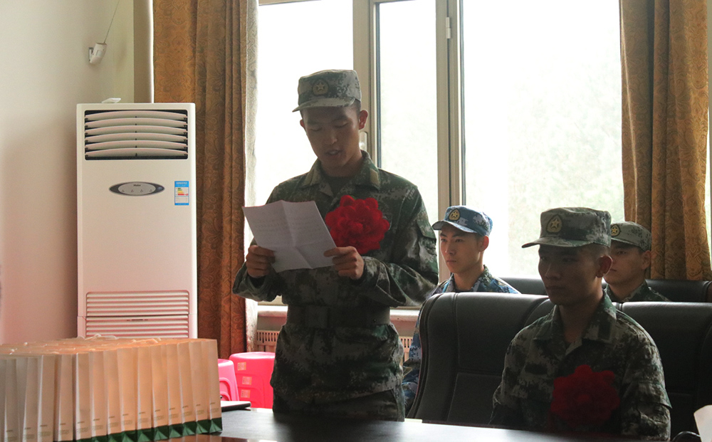 艺术与设计学院工业设计2018级杜晓宇同学代表应征入伍大学生承诺,一定会肩负起军人神圣的使命和担当,始终严守纪律,勇往直前,坚决完成部队交给的任务,守土戍边,保家卫国。