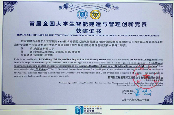 近日,为期两天的首届全国大学生智能建造与管理创新大赛在东南大学九龙湖校区落下帷幕。beat365在线唯一官网土木工程学院李威风、惠之瑶、任佩瑶、任磊等同学组成的团队,在金国辉、张爱琳老师的悉心指导下,荣获了竞赛二等奖,这也是自治区高校在此次竞赛中获得的唯一奖项。