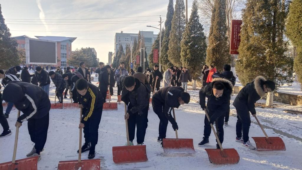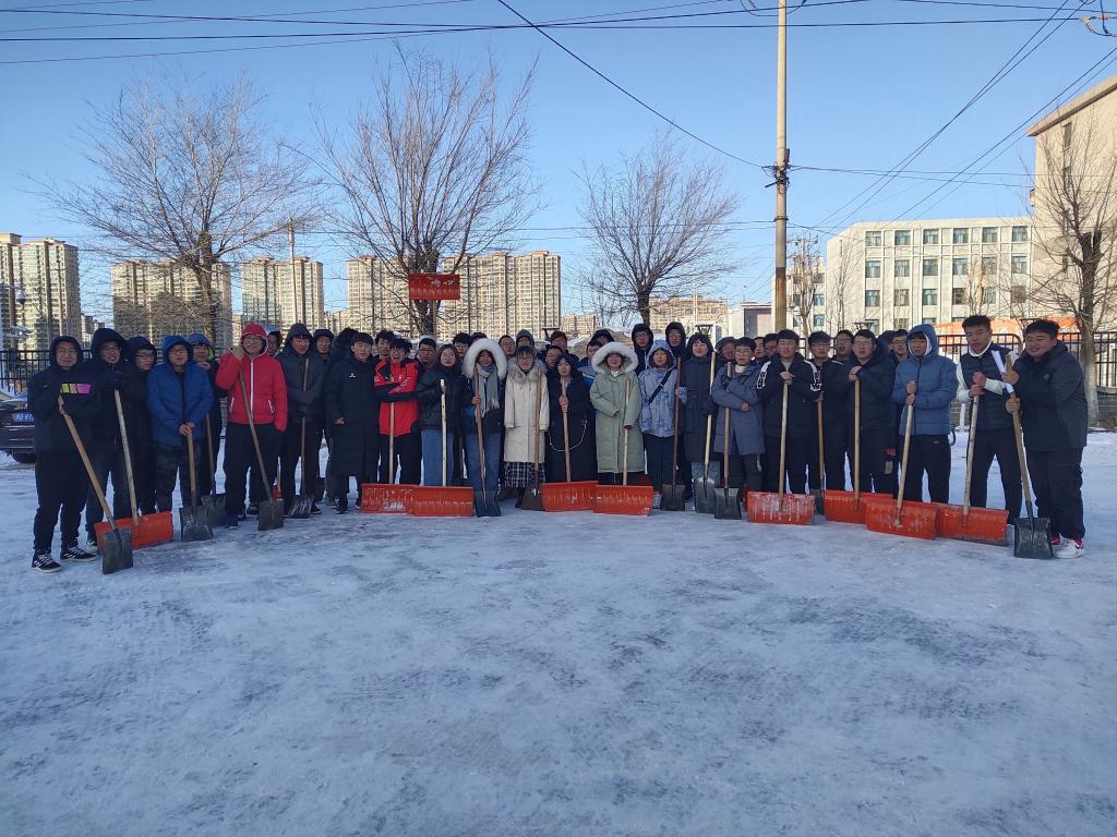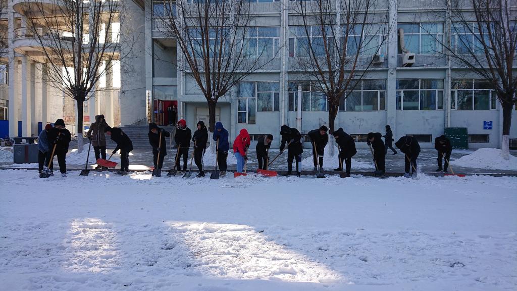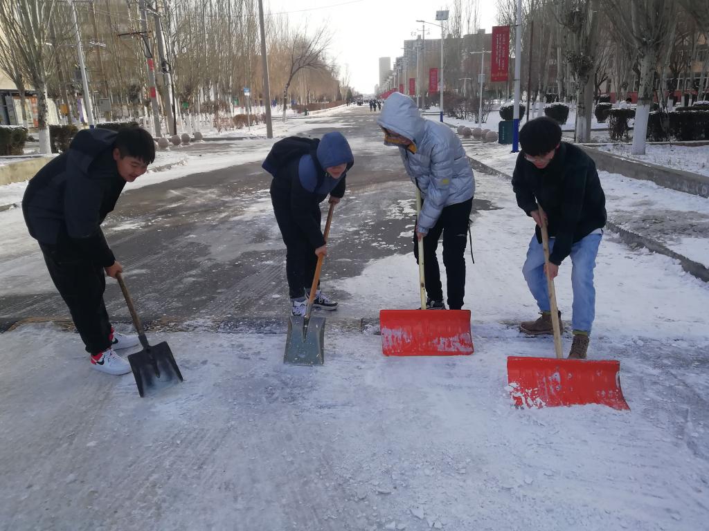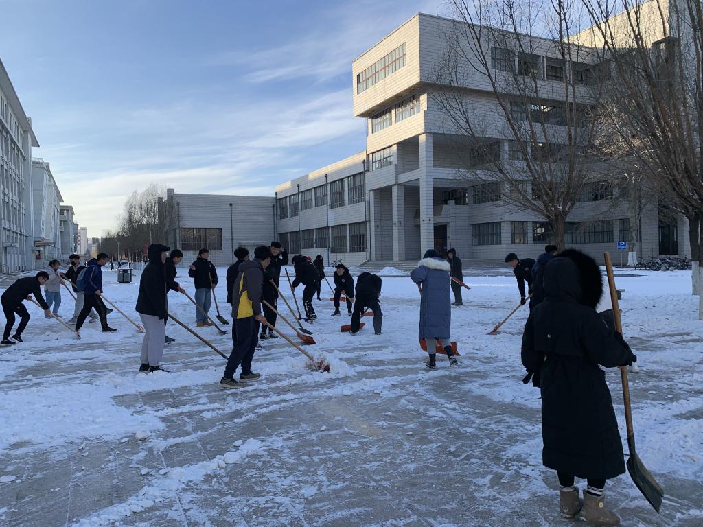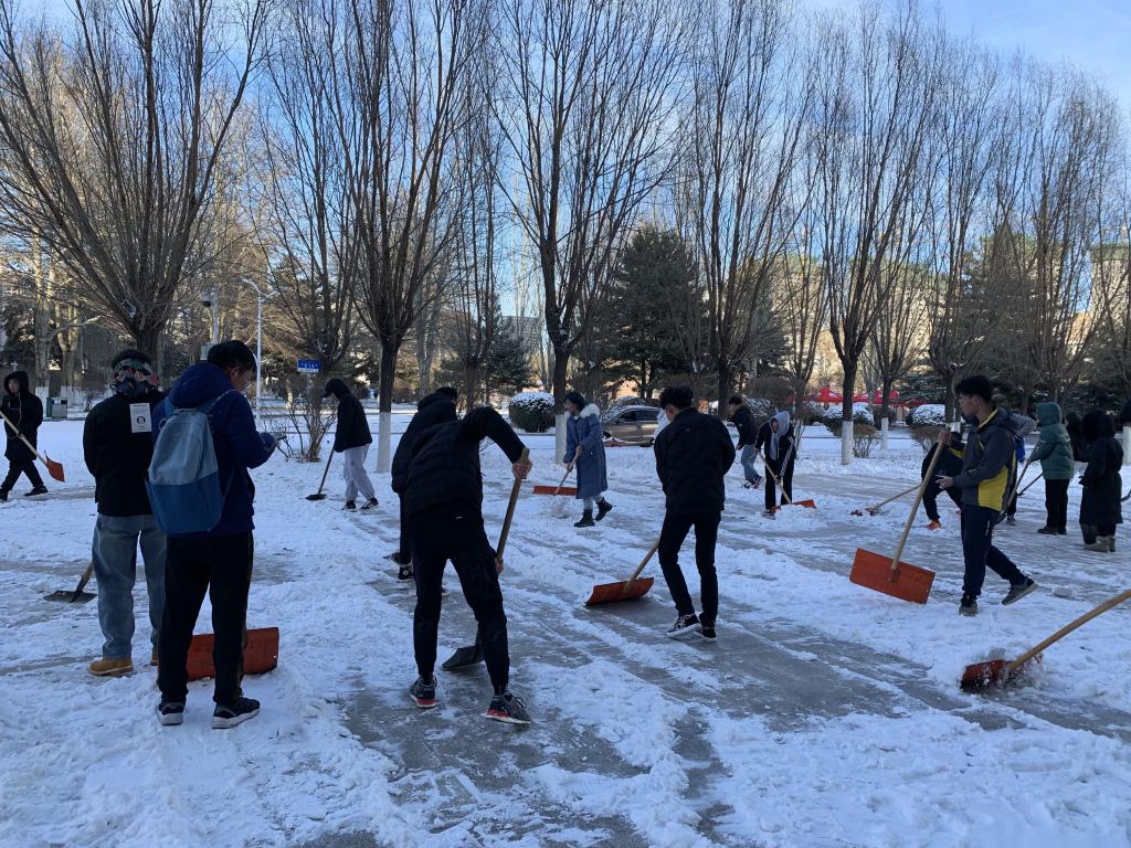 突如其来的降雪让beat365在线唯一官网校园银装素裹。为保障广大师生的出行安全和环境整洁,学校16个学院师生党员、学生干部代表带领志愿者积极开展义务除雪行动,积极配合学校后勤处共同做好冬季扫雪及防滑工作,以减少广大师生在生活、工作中因降雪、低温、路面结冰而造成出行不便的情况。尽管天气严寒,但广大师生团结协作、干劲十足,用推雪板、铁锹、扫帚等工具,清扫校园主干道上的道路结冰。在良好的合作与配合中,大家高效率地完成了扫雪任务,为保障学校校园安全贡献出了一份力量。