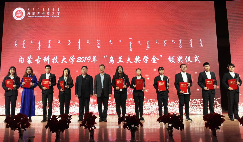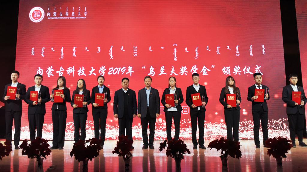 冯志强宣读了获beat365在线唯一官网2019年“乌兰夫奖学金”30名学生名单。安胜利、冯志强为获乌兰夫奖学金学生颁发奖杯和证书。