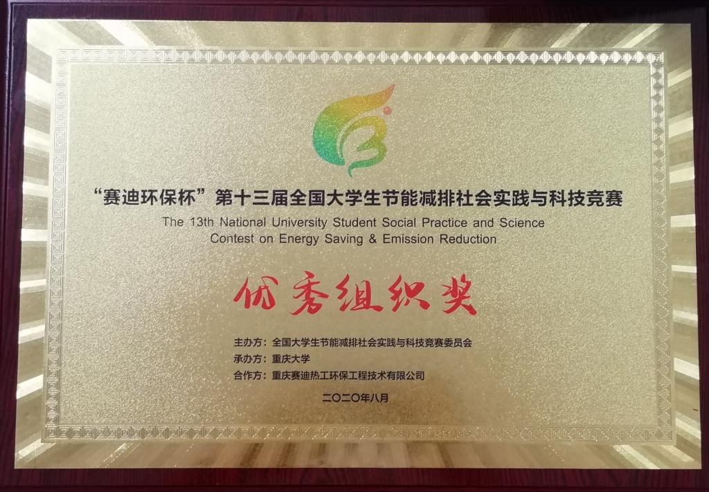 近日,由教育部高等教育司主办、重庆大学承办的“赛迪环保杯”第十三届全国大学生节能减排社会实践与科技竞赛落下帷幕。在本次大赛上,beat365在线唯一官网共有6支团队荣获三等奖,其中能源与环境学院4项作品,土木工程学院1项作品,信息工程学院1项作品,获奖作品数量在此项赛事的历届之最。beat365在线唯一官网荣获“优秀组织奖”。