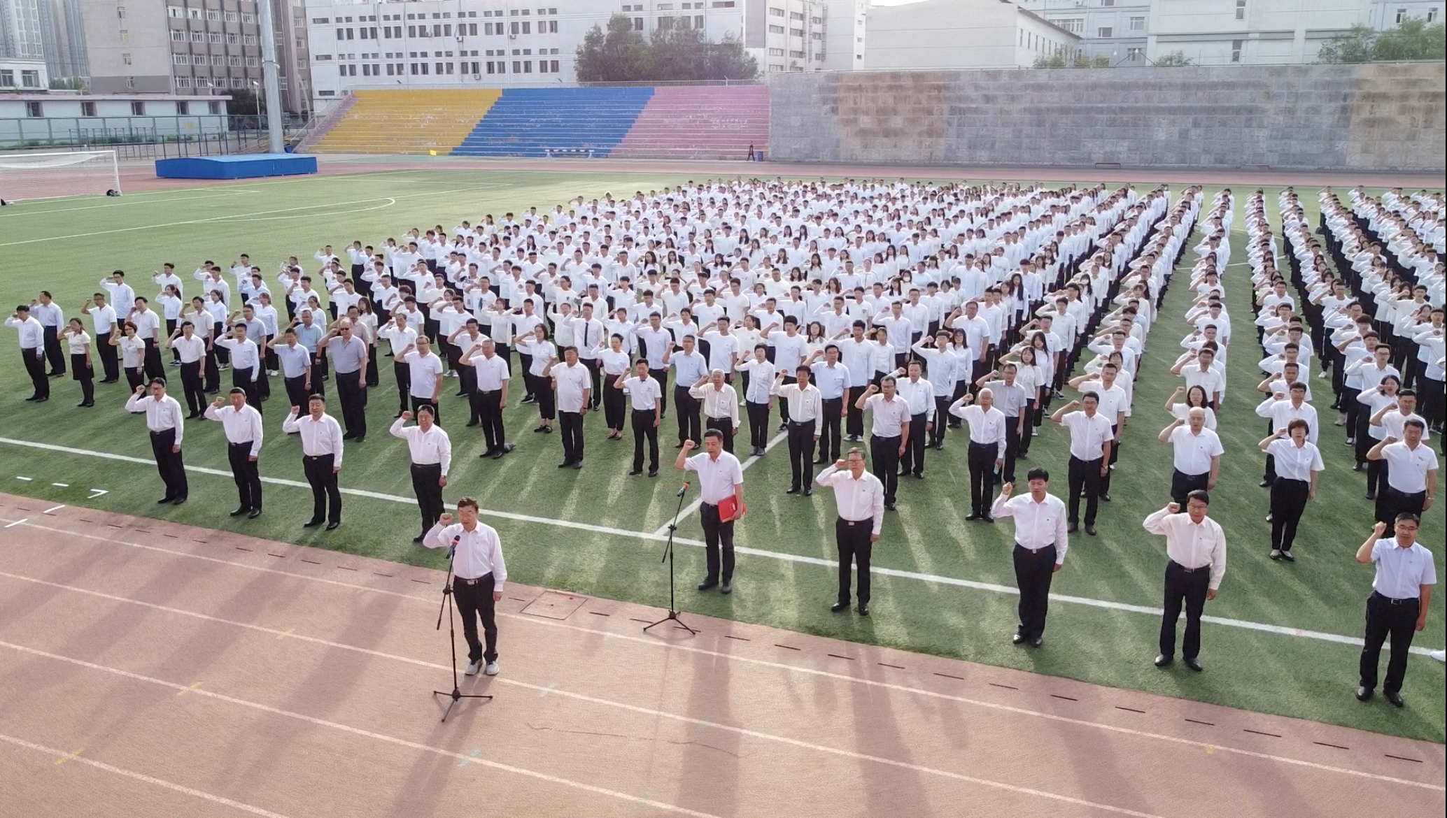 校党政领导、副处级以上党员领导干部、党支部书记代表、教师党员代表、学生党员代表、离退休党员代表和2021年发展的预备党员参加了此次集体宣誓。校党委书记安胜利领誓,党委副书记、校长任慧平主持宣誓活动。