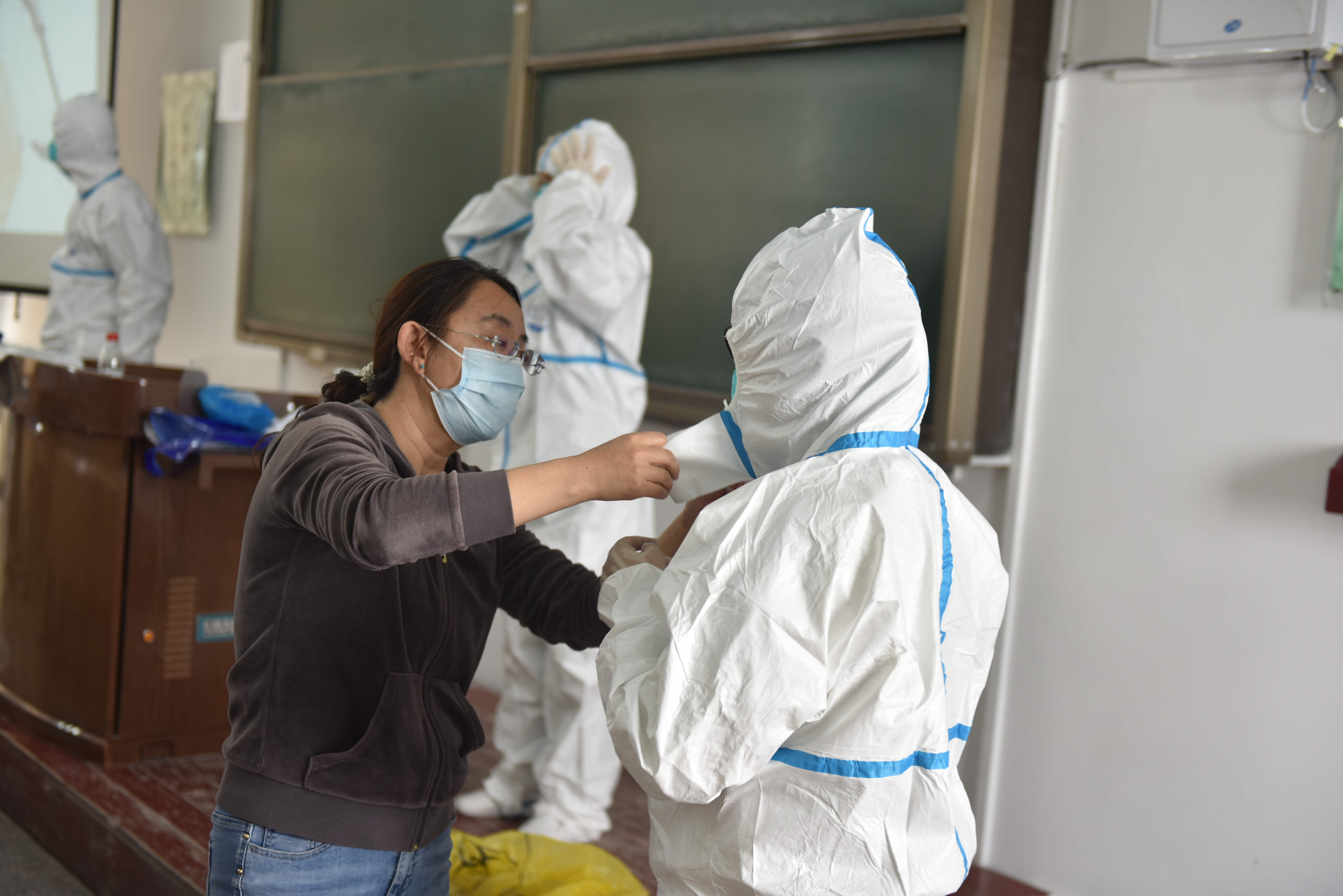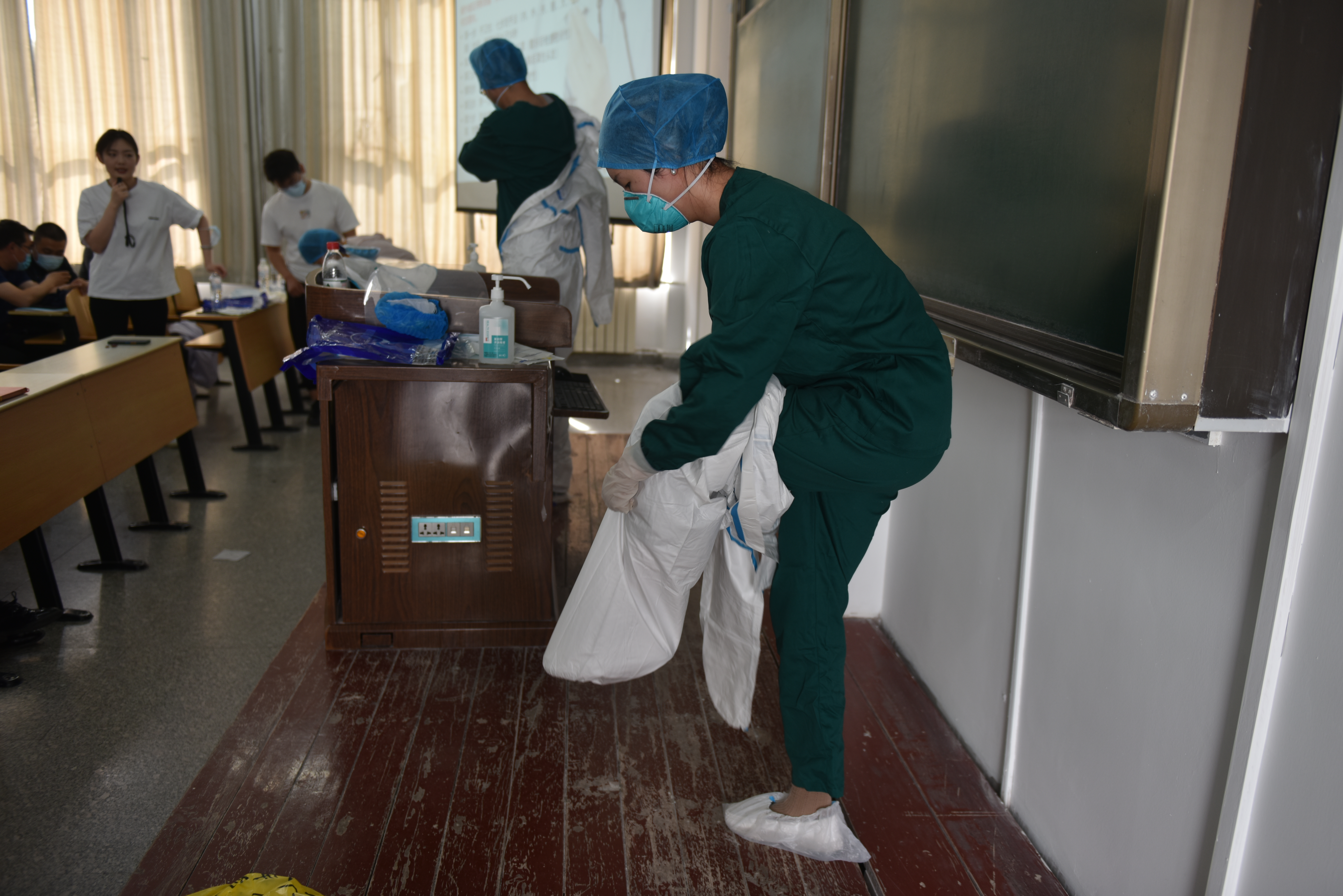 学校特邀昆都仑区疾控中心专业医护人员,就近期疫情防控要求,结合学校防疫防控工作开展情况,详细讲解了疫情防控专业知识、复学时学校及学生防护指南、穿脱防护服流程和校园抗疫心理干预等内容,现场演示了“科学佩戴口罩”、“七步洗手法”以及穿、脱防护服等操作。