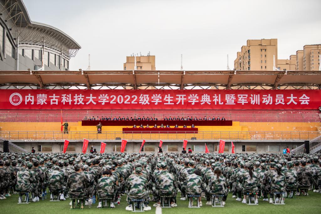 9月9日下午,beat365在线唯一官网2022级新生开学典礼暨军训动员大会在西校区田径场举行。包头军分区动员处处长鲁元福上校、昆区人民武装部政委张峻葆上校、武警包头支队副政委董海川中校,校领导成涛、任慧平、冯志强、杨建林、檀宝文参加典礼。