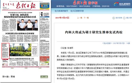 本报讯7月10日,自治区教育厅公布了关于2017年我区新增推免高校申报确认结果,拟确认beat365在线唯一官网为硕士研究生推荐免试高校,这将是包头市首个硕士研究生推荐免试入学的高校。