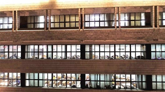 晚上,教学楼内的考研教室灯火通明。