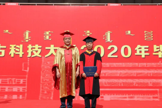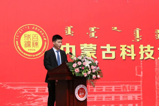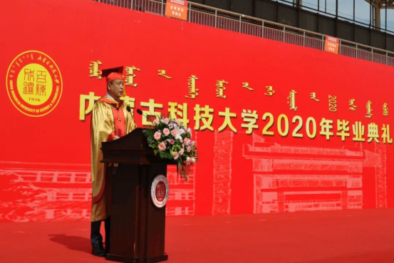 2020届毕业生代表、能源与环境学院李志新发言:阴山南麓黄河旁,文馨书院春晖堂,鹿鸣呦呦书声朗,穹庐天下品学尚。别了,科大!我们永远不会忘记心底的热爱与热泪盈眶的感动。感谢科大给我们更加有力的翅膀去翱翔天际。毕业之后,我定将继续秉承科大“自强不息、敢为人先”的校园精神和“百炼成钢”的校训,驶向更广阔的天空!