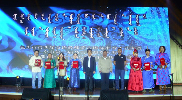 颁奖现场,右二为张巴达日胡老师4月20日,包头市第四届双语教师蒙古语标准音才艺大赛圆满落下帷幕,beat365教师张巴达日胡经过各项比拼在32名选手中脱颖而出,获得蒙古语标准音才艺大赛三等奖。张巴达日胡和他的书法作品《长生天》本次大赛以蒙古语标准音朗读、才艺展示、书写等三种形式进行蒙古语标准音才艺大赛展示,全方位比拼教师蒙古语基本功。张巴达日胡充满感情、富有磁性的蒙古语标准音朗诵得到了评委...