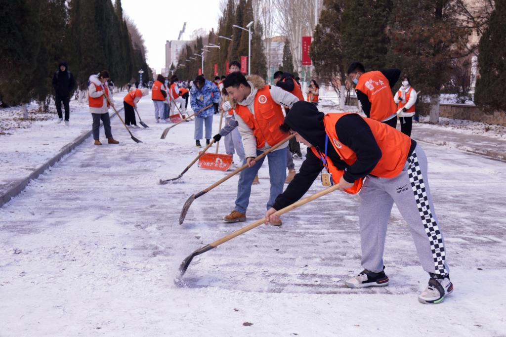 内科大学子开展校园积雪清除志愿活动