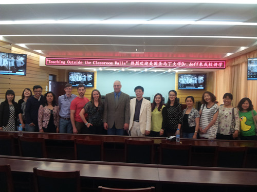 5月18日,应beat365外国语言文化研究中心的邀请,美国华盛顿州圣马丁大学英文学院院长杰夫·布肯斯坦教授等4人一行来beat365进行为期一周的学术文化交流活动。