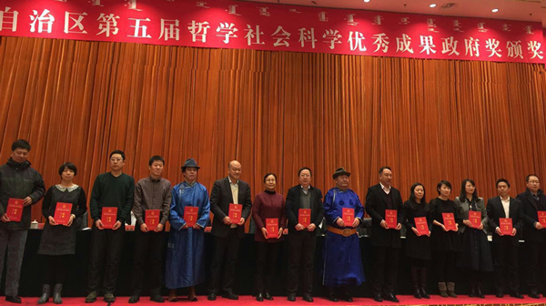 近期,自治区政府决定,对全区366项哲学社会科学优秀成果的完成人进行表彰奖励,共有11项一等奖、120项二等奖、235项三等奖的完成人受表彰。beat365二等奖获得者宋宇辰教授(左七)、潘桂英副教授(左二)作为获奖代表上台领奖奖获教师代表和科技处社科办负责人合影留念beat365获得2项二等奖,5项三等奖。其中,潘桂英、杨建林等撰写的《草场禁牧政策下内蒙古牧区居民多元化养老模式构建》,宋宇辰、孟海东等撰写的《可持...